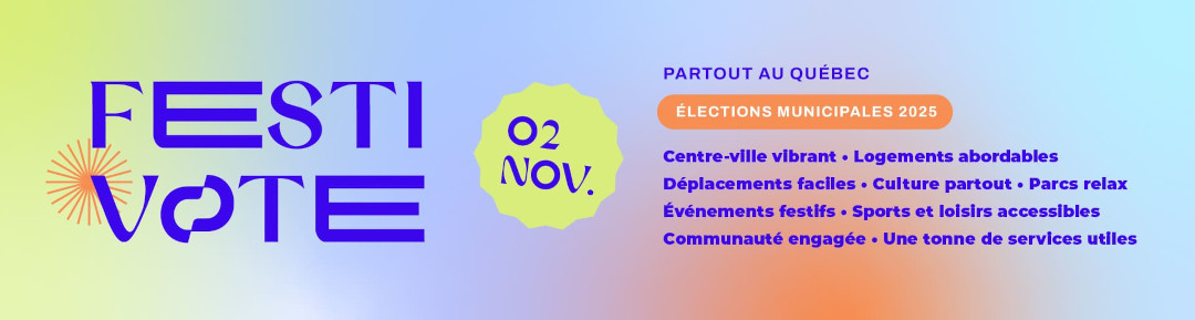 L’Union des municipalités du Québec (UMQ) lance Festi-Vote, une campagne de communication conçue pour encourager le vote des jeunes de 18 à 34 ans aux élections municipales du 2 novembre prochain.