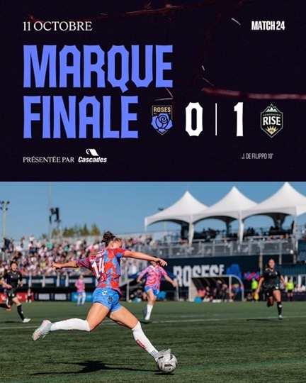 Malgré un but rapide du Rise en première demie, les Montréalaises ont su imposer leur rythme et reprendre le contrôle du jeu, multipliant les occasions et démontrant une belle maîtrise du ballon. En deuxième période, les Roses ont redoublé d’intensité, poussées par leurs partisans venus en grand nombre au Stade Boréale. Si l’égalisation leur a échappé de peu, la rencontre aura une fois de plus illustré la combativité et la solidarité d’un groupe en pleine ascension.